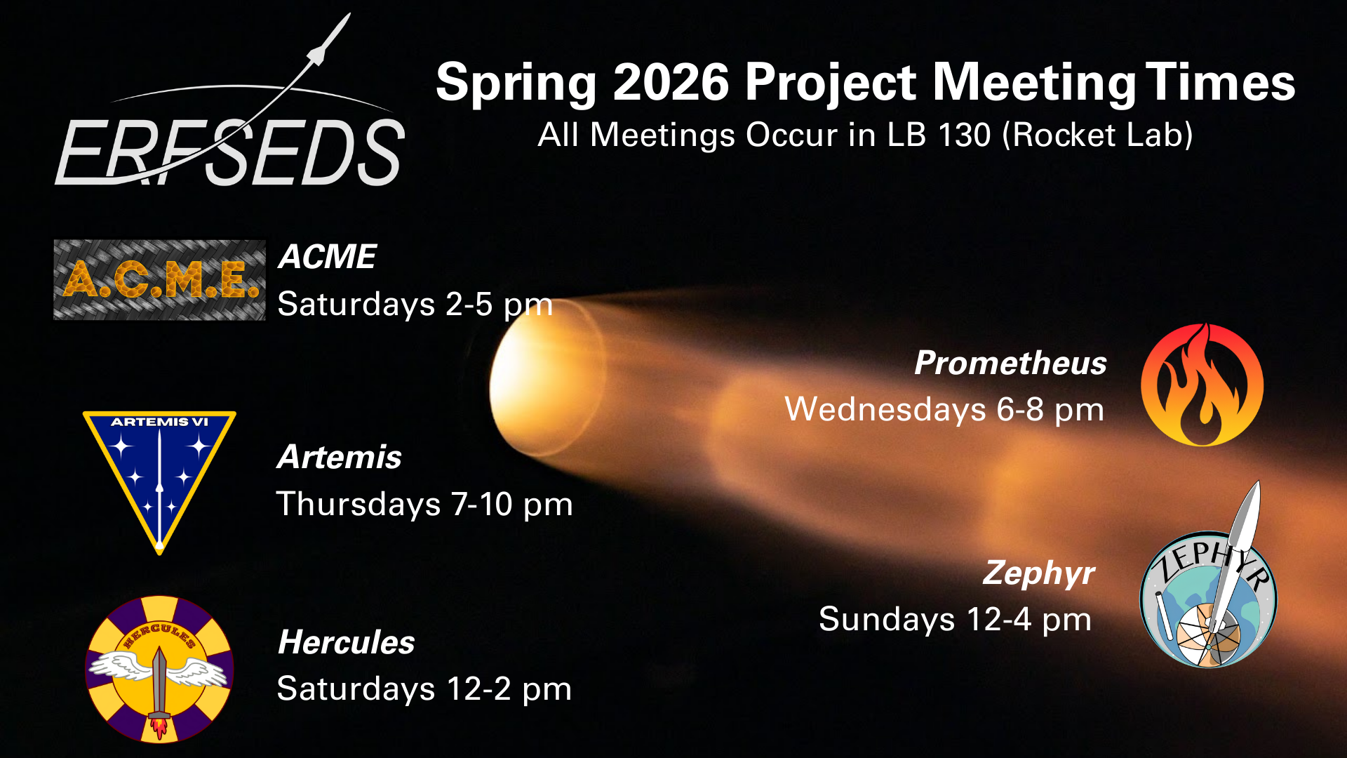 Project meeting times for the Spring 2026 Semester