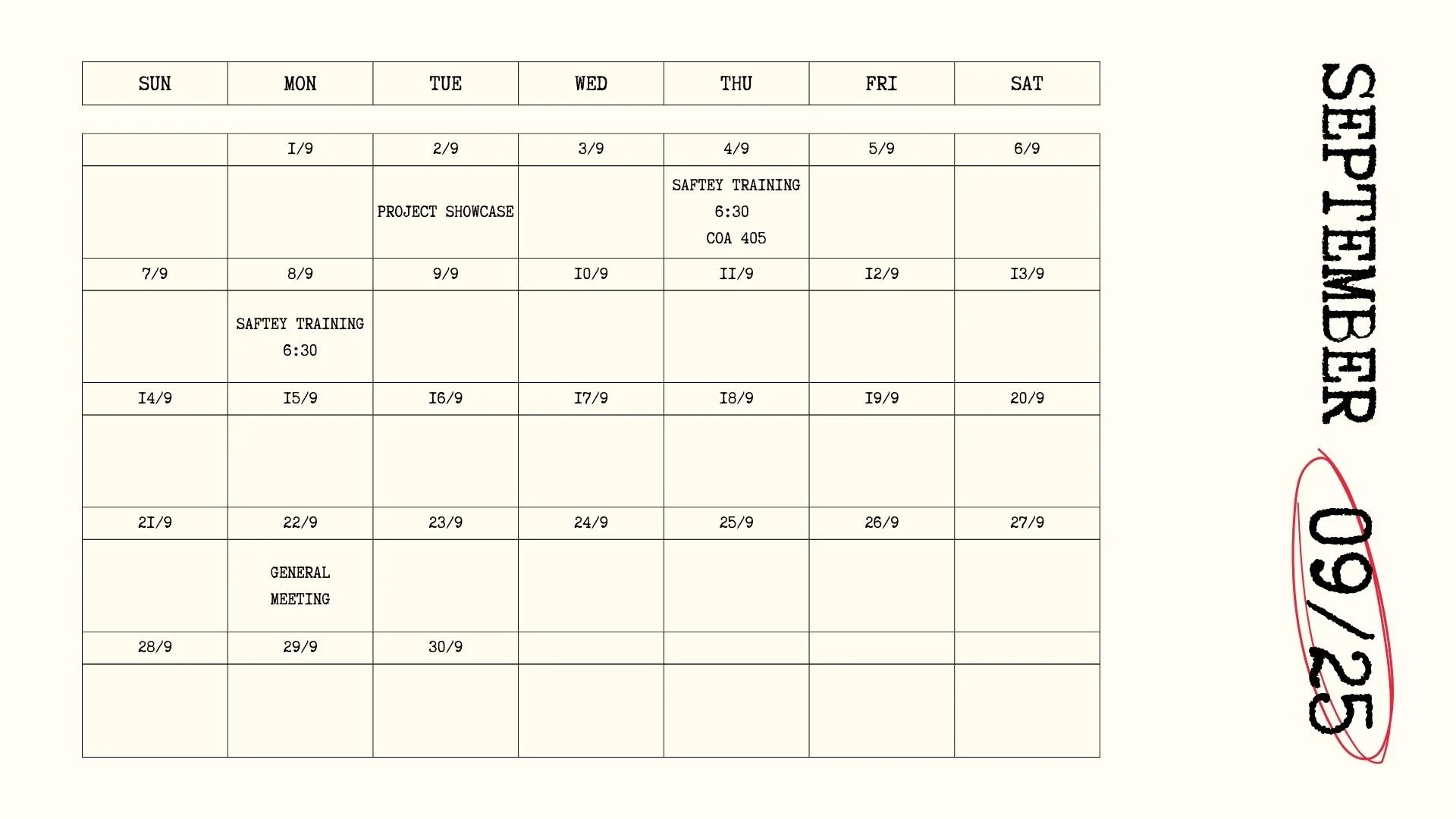 Here is the September calendar for ERFSEDS, this doesn’t include project meetings. Those are listed above.